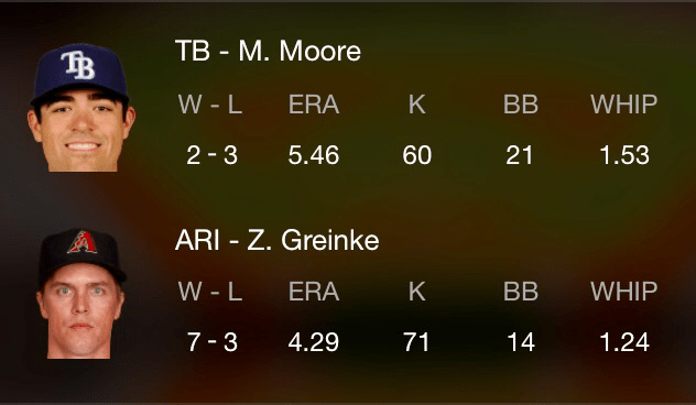I’m also taking Zack Greinke and the Arizona Diamondbacks at home versus the Tampa Bay Rays. Greinke is 4-0 in his last four starts and carries a career 3.42 ERA against Tampa Bay. With Greinke’s ability to locate four different pitches, it makes it extremely difficult for opposing batters to square up his pitches when he’s pounding the zone. The moneyline is a bit pricey (-180) but I see them winning this game behind their ace.